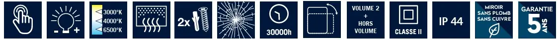 - Touche sensitive avec variateur d’intensité et de couleur : 3000/4000/6500°K